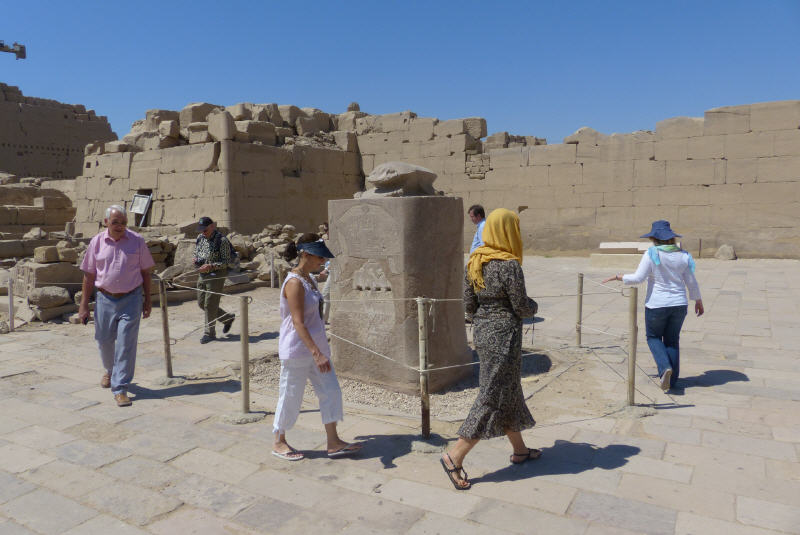 Wer Gast in Luxor ist, darf auf keinen Fall den Besuch des Karnak-Tempels versäumen. Unser Fremdenführer Abdel Nasser hatte über die berühmte Tempelstadt wieder viel zu erzählen. Erst Ende des 19. Jahrhunderts wurde die weit verzweigte Anlage, deren Wege durch Überschwemmungen des Nils mit Schlamm und Müll bedeckt waren, wieder renoviert und zugänglich gemacht. Hier haben sich alle großen Pharaonen vor zweitausend Jahren ein Denkmal gesetzt.