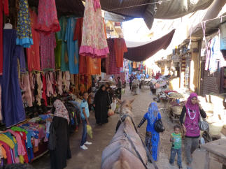 Der junge ägyptische Kutscher bahnte sich mit seinem Gefährt einen Weg direkt durch die schmale Basargasse. Einige wenige Einheimische traten zur Seite. Als sie uns ausländische Fahrgäste sahen, winkten einige spontan, genauso wie auch der eine oder andere Händler im Basar. An einer Straßenkreuzung stand ein Schützenpanzerwagen, auf dem drei junge Soldaten ohne Helm und Waffen saßen und in die Sonne blinzelten. Die Szene wirkte wenig bedrohlich.