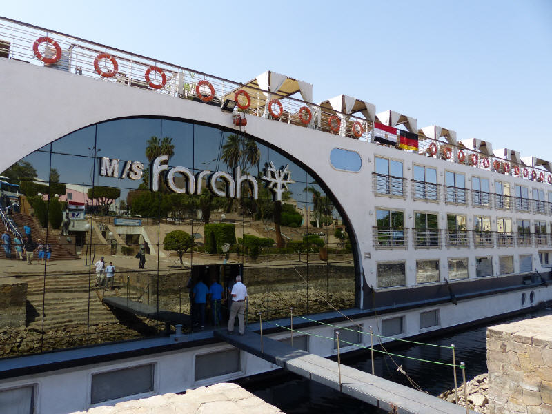 Auf unsere Reisegruppe wartete in Luxor am Ufer des Nils das Flussschiff MS Sarah. Es wurde nach umfangreichen Renovierungen erst vor drei Monaten wieder in Dienst gestellt. Doch gegenwärtig hatte das Schiff ja dienstfrei, weil keine Touristen da sind. Jetzt waren wir da und fuhren die klassische Route von Luxor bis Assuan. Wir sahen ein trauriges Bild: Etwa 290 Kreuzfahrtschiffe sind auf dieser Strecke an den Ufern vertäut und warten auf Passagiere.