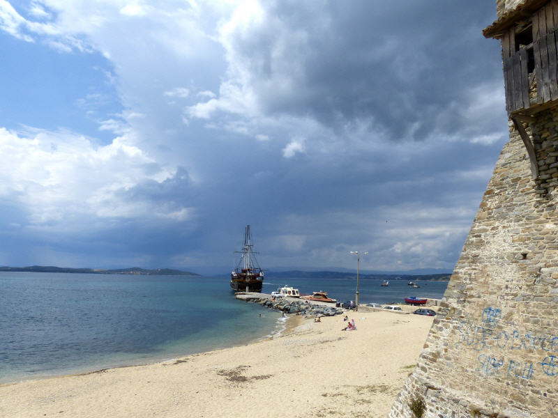 Einer der spannendsten Ausflüge beginnt 10 Autominuten vom Resort entfernt im Hafen des kleinen Ortes Ouranoupolis. Eine Schiffs-Tour führt an dem mehrere Dutzend Kilometer langen Küstenstreifen der Mönchs-Republik Athos entlang. Hier thronen, meist in die Felsen gehauen, Jahrhunderte alte Klöster, umgeben vom Grün.