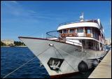Das Schiff MY Vita (MY steht für Motoryacht) hat im Hafen von Rijeka festgemacht. Jeweils am Sonnabend werden die Gäste für eine Sieben-Tages-Tour erwartet. Reiseveranstalter RIVA hat im Hafengelände einen kleinen Stand aufgebaut. Jeder Gast wird von jungen Mitarbeitern zu seinem Schiff geleitet.